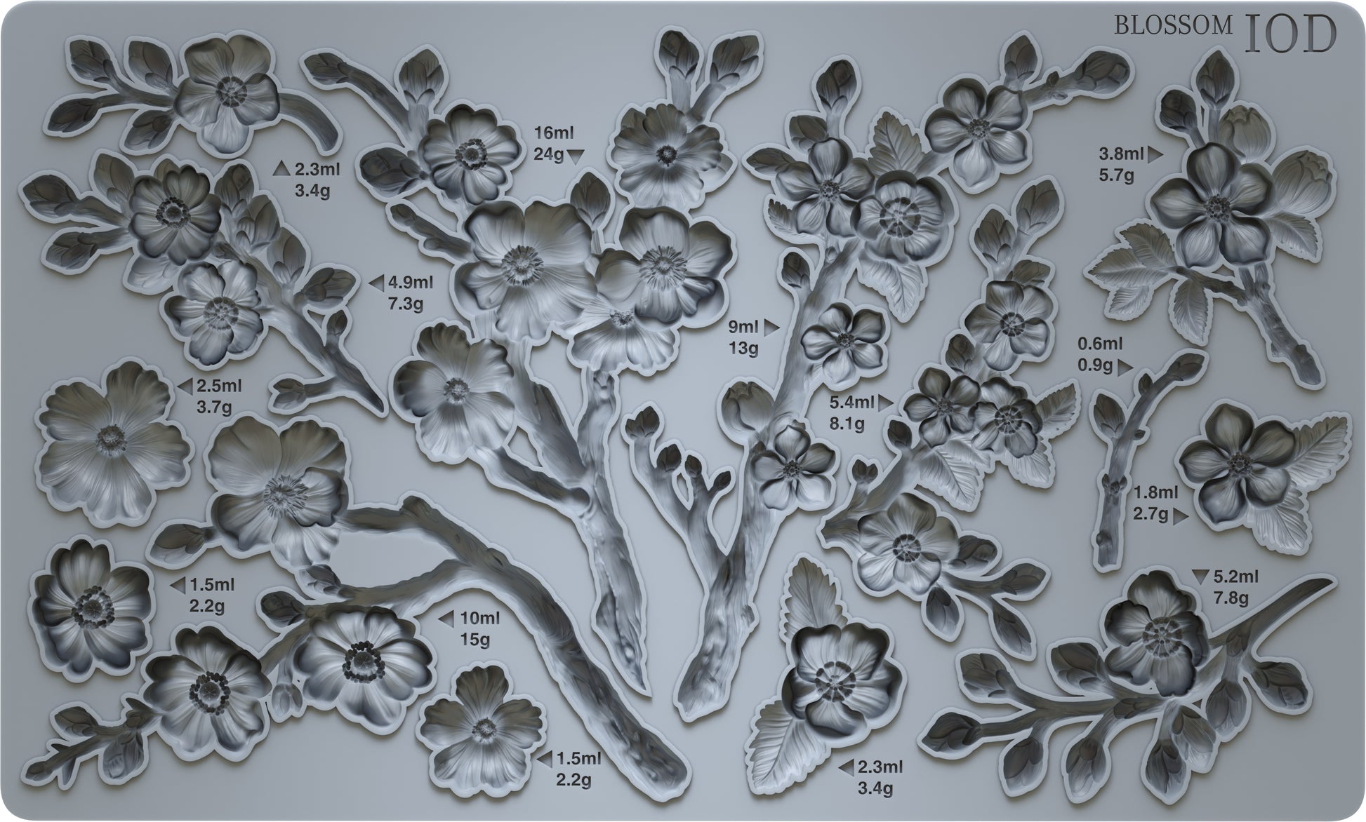 The Blossom IOD Mould is a beautifully sculpted collection of floral branches designed to bring soft, organic elegance to furniture and home décor projects. Featuring delicately detailed blossoms, budding stems, and flowing branch elements, this mould captures the natural movement and charm of flowers in bloom—perfect for romantic, cottage, European, and nature-inspired styles.