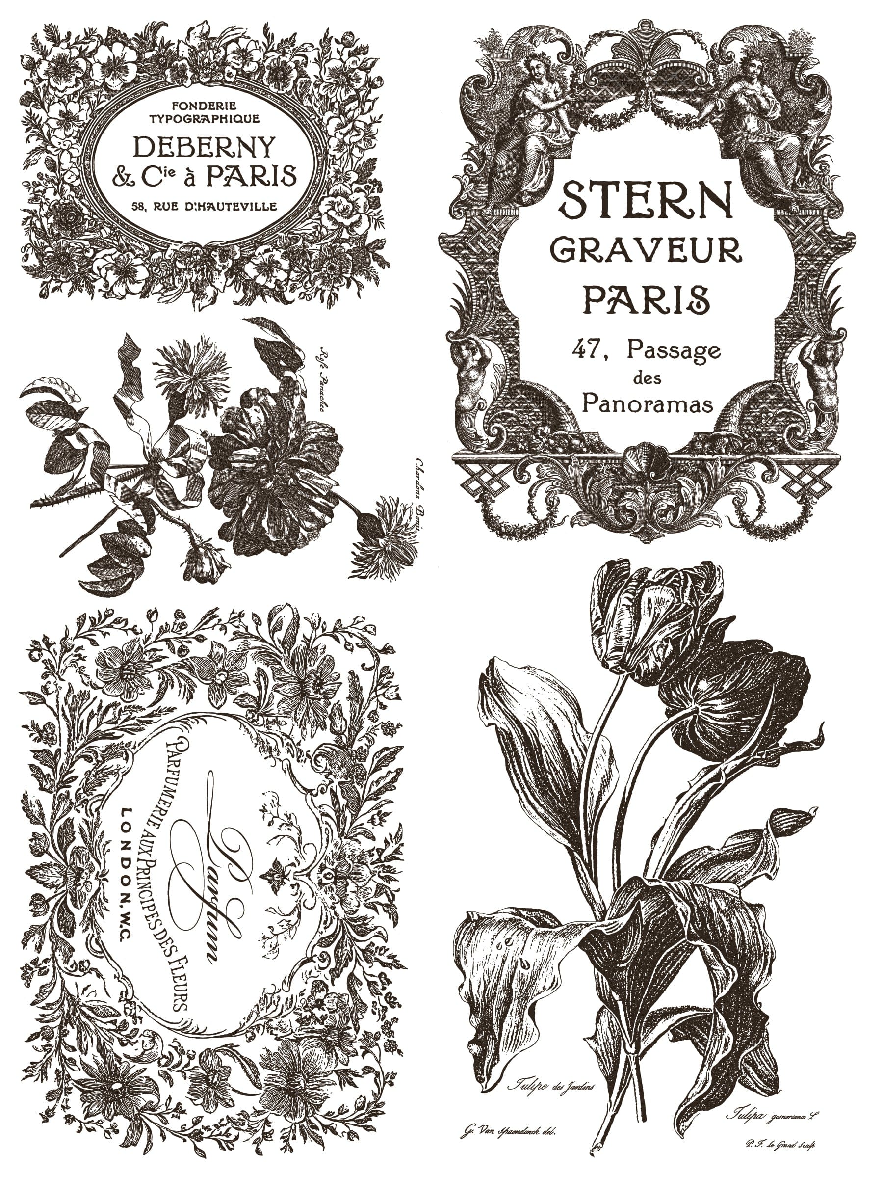 Floriography is sized just right for everything from charming smalls to statement furniture flips. Picture these scrumptious labels tucked into the drawers of a vintage vanity or gracing a console table in a cozy French countryside living room. They’d be lovely additions to thrifted milk jars painted in soft white chalk-type paint, giving them that perfect French flea market feel.