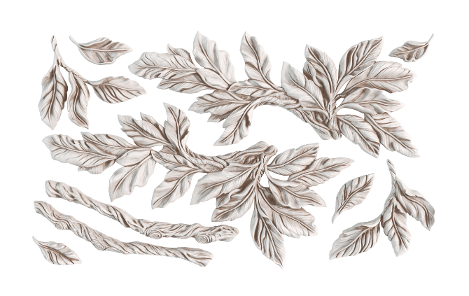 This detailed silicone mould features a collection of gracefully arched leaves that look like they stepped right out of a classical frieze. From rich, ruffled edges to curling tendrils, every element is sculpted to add texture and movement—no boring botanicals here!